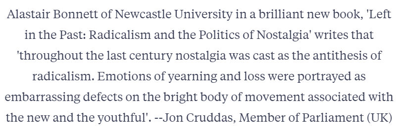 “it was especially the work of Alastair Bonnett that put an end to the idea of nostalgia as something constructed and invented in the West for the West. Basing his work on studies of different continents he revealed the diverse facets of nostalgia”